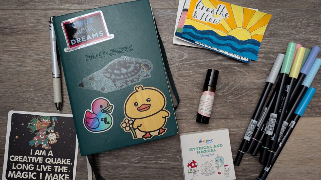 I know you have watched me grow my creative toolkit, that little collection of tools I keep within reach—my bullet journal, colorful pens, calming scents, and small reminders that creativity is magical. It’s not just about pretty things. These are the items that help me listen to you, Creativity, and turn ideas into something real.